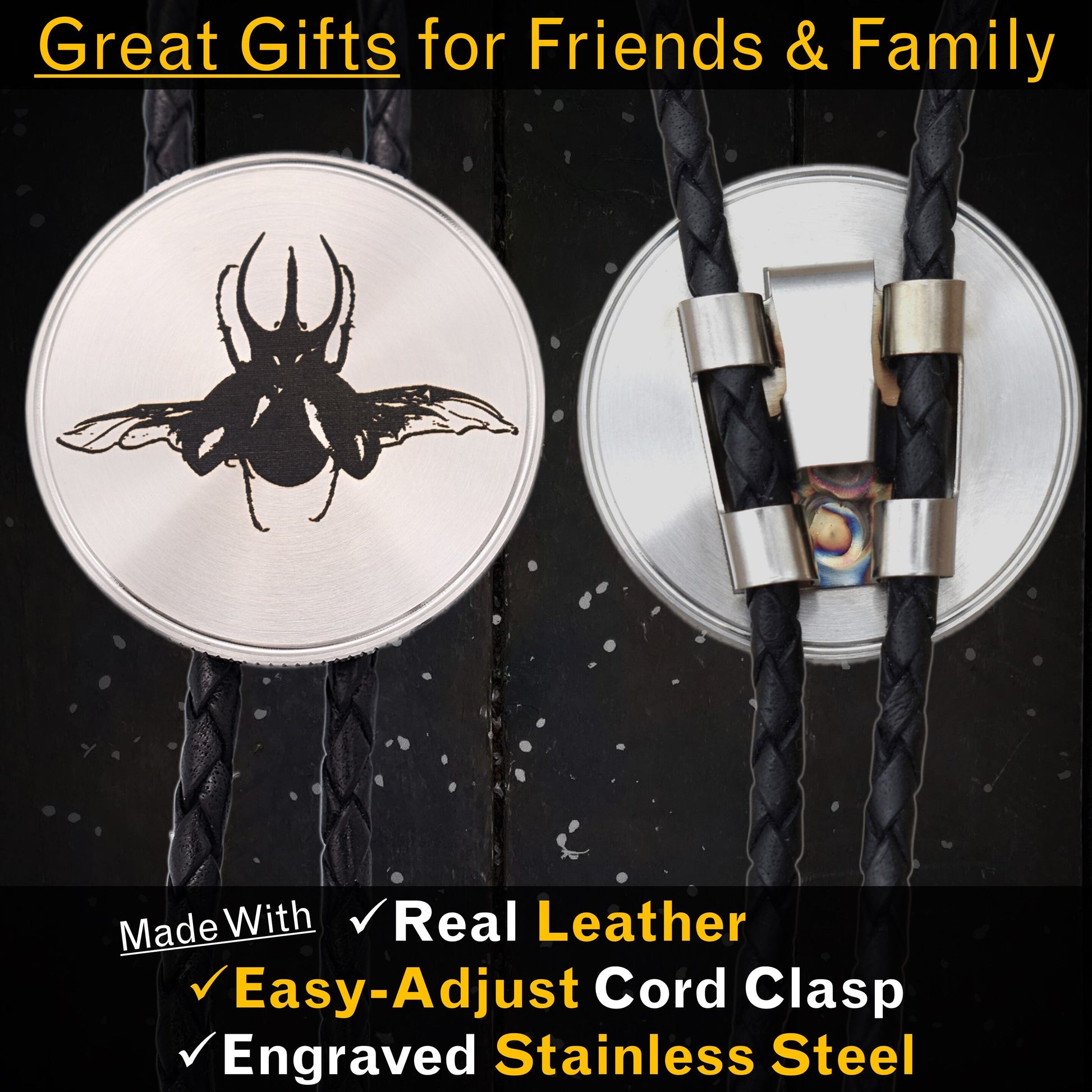 āœ”ļø Easy Cord Adjustments – We use stainless steel clasps that make it easy put on, loosen, or tighten your bolo tie with the push of a button.