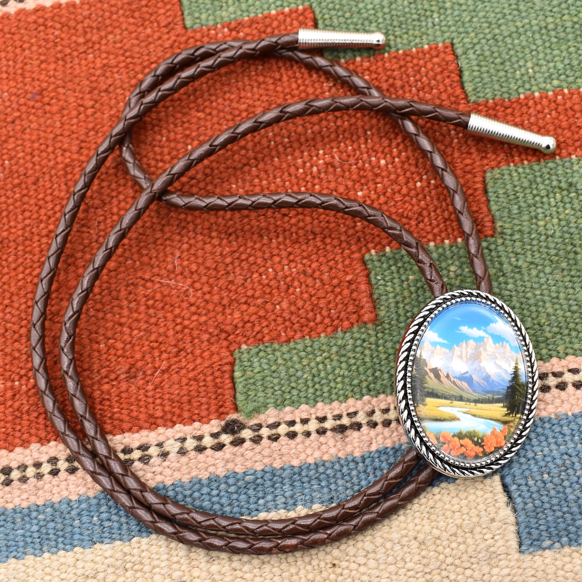 In 2023, I started making bolo ties out of my parent's garage. Most bolo ties for sale online are cheap and poor quality — made with fake leather and boring rocks — I wanted to do better! That's why I created my own line of bolos with detailed art, and the highest quality leather cords.